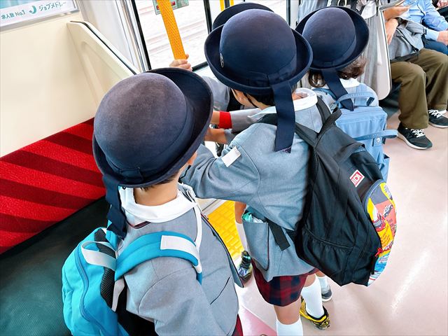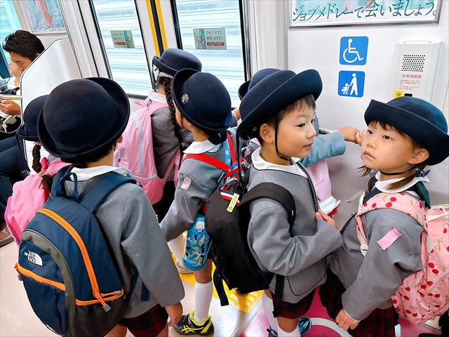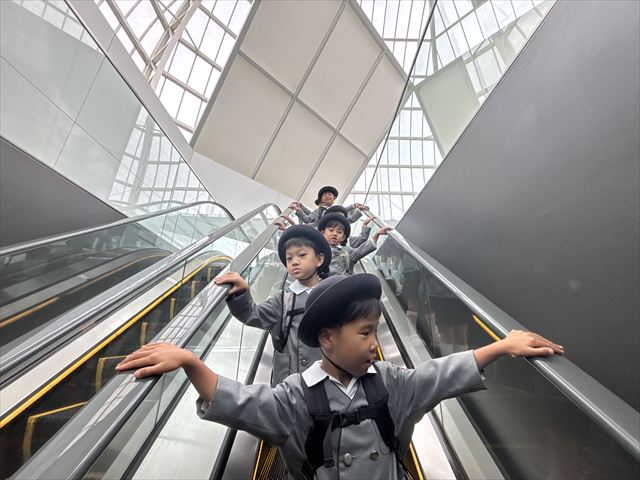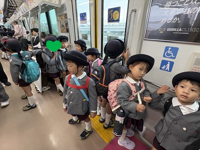 当日を迎え、お友だちみんなが新浦安駅に集合しました。保護者の方に「いってまいります!」のご挨拶をして、出発です。電車に乗る際にはグループに分かれ、車内では”おくちチャック”の約束事を守って乗車することができました。