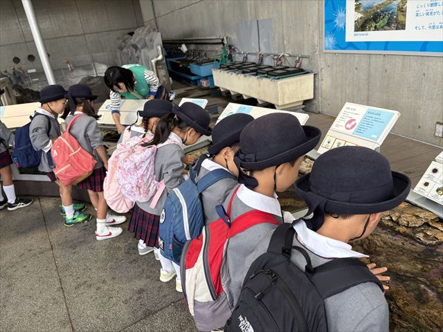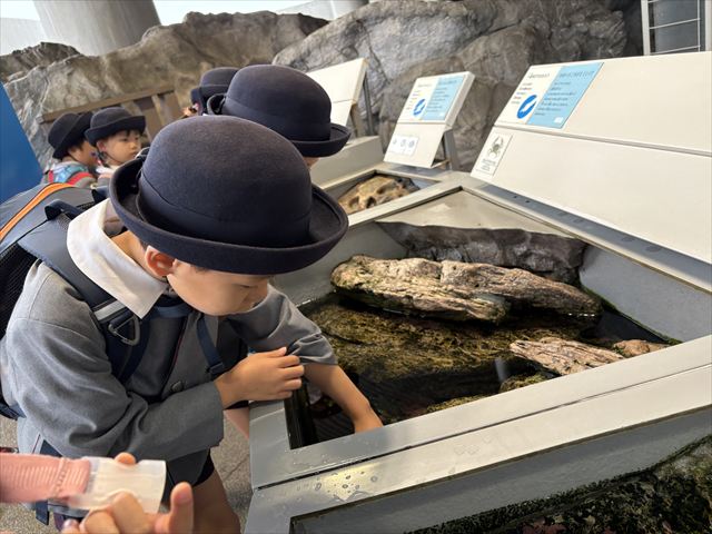 ”しおだまり”というコーナーでは、実際に生き物を触ることができました。水族園のスタッフの方が色々な説明をしてくださいました。大喜びの子どもたちです🎵