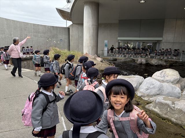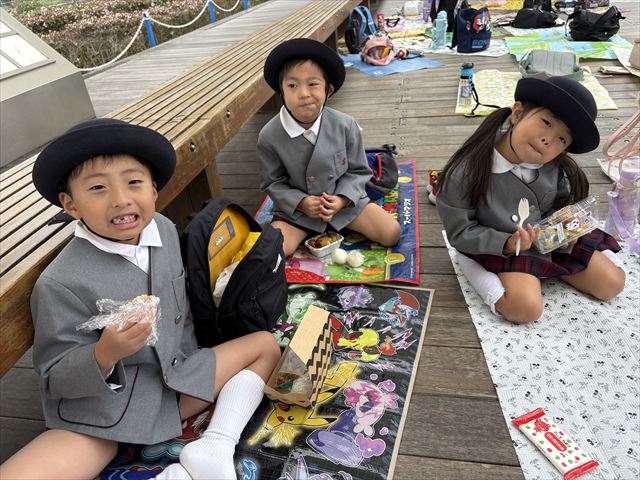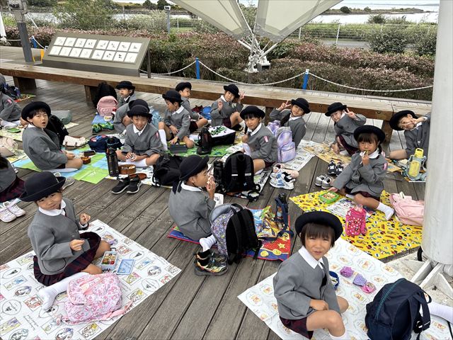 館内を見学して、待ちに待ったお弁当の時間です🍴近くには附属幼稚園、第二幼稚園のお友だちもお弁当をいただいていました!浦安幼稚園のお友だちもウッドデッキにレジャーシートを敷いて、いただきました。おうちのかたが作ってくださったお弁当、美味しかったですね🍙