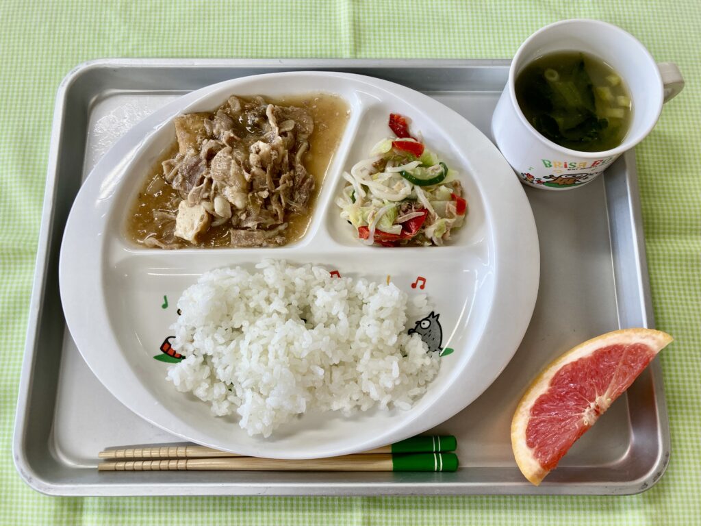 ごはん・ほうれん草の味噌汁・すき焼き風煮・和風ツナサラダ・ルビーグレープフルーツ