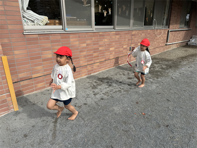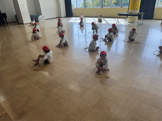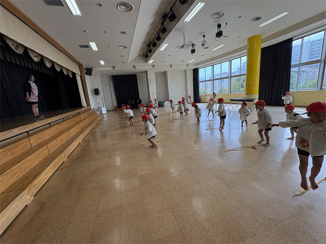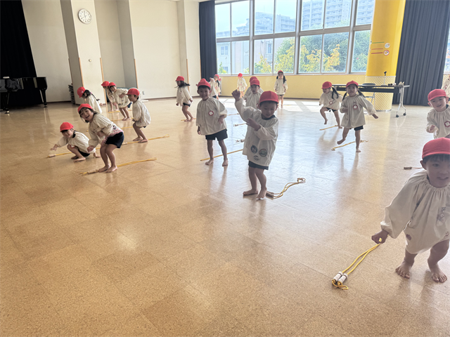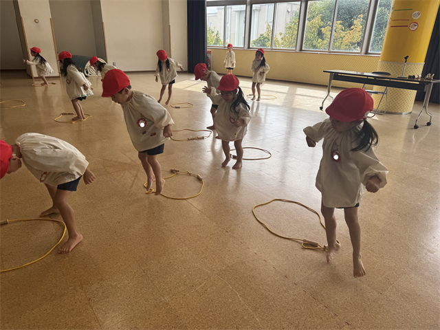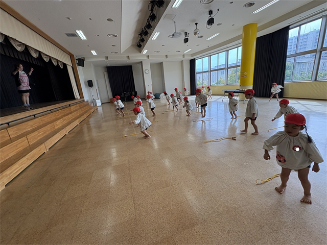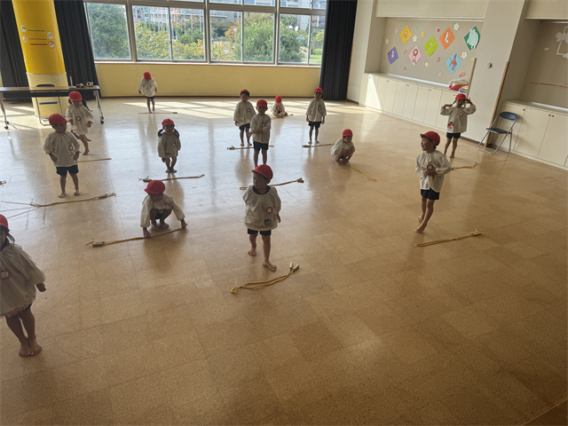 運動会でいただいた縄跳びを使って、遊戯室で遊んでみましたよ🌟