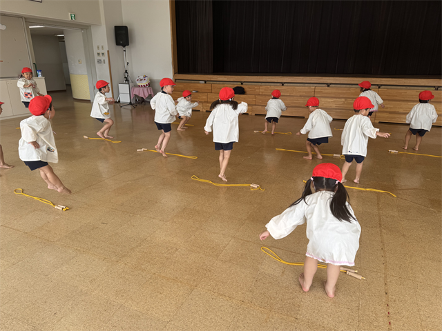 「簡単そう!」と言っていた子どもたちも、実際にやってみると足が縄に当たってしまったりと、難しさを感じたようでした。