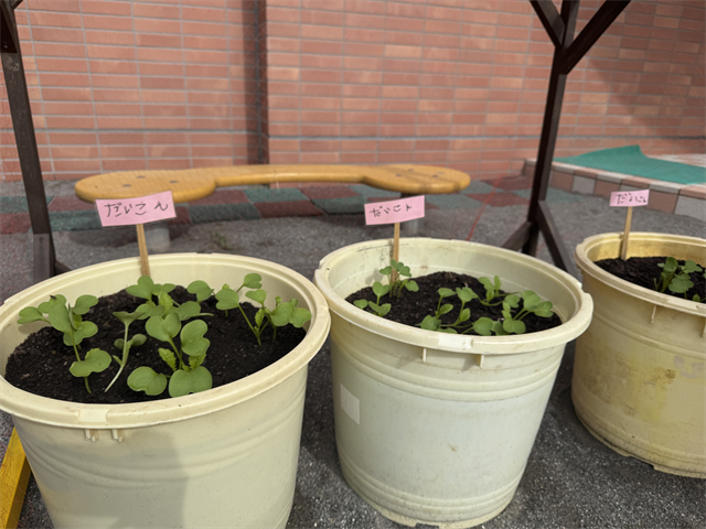 大根も、ぐんぐん育ってきています。どこまで大きく育つか、楽しみですね!