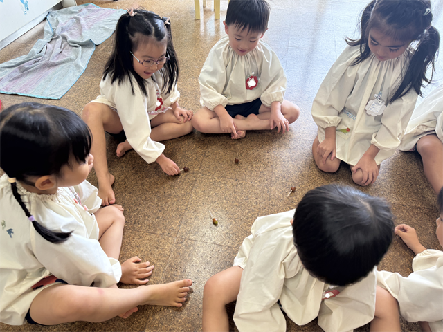 どんぐりの大きさや形によって、周り方が変わるので興味深そうに遊んでいました💗