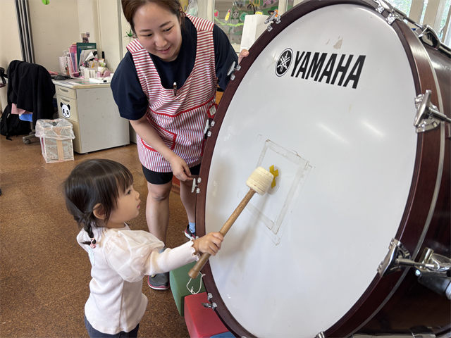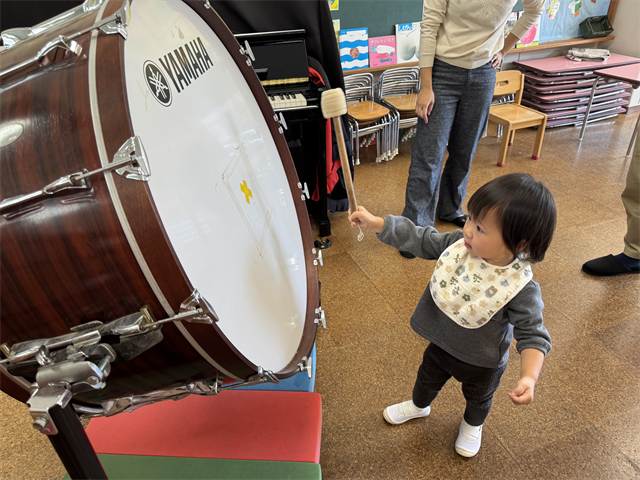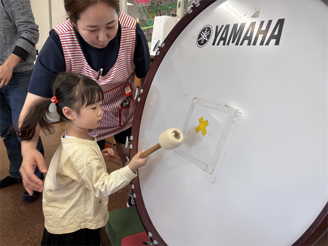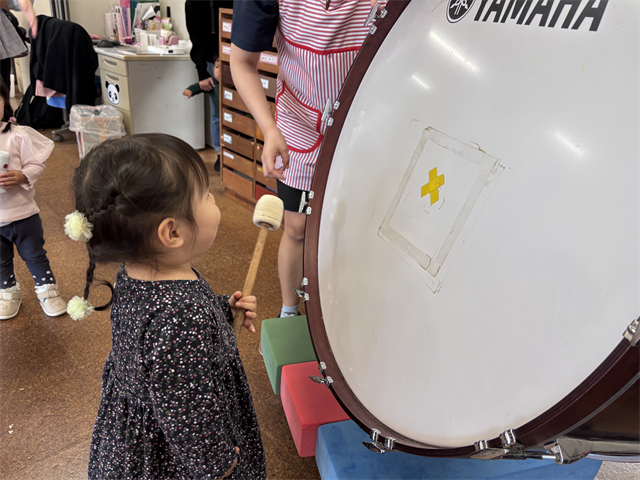 大太鼓は初めて見るお友だちも多く、音の大きさに驚いていました👀