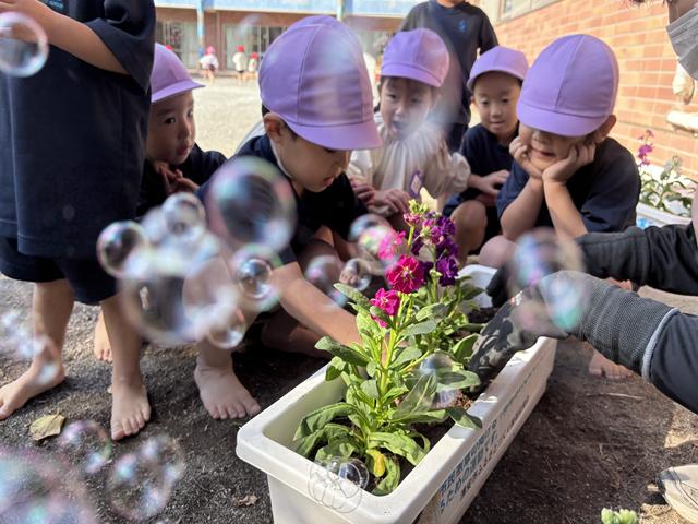 「きれ~い!」「ピンク色かわいい~!」などお花に興味深々なお友だちがたくさん見られました。