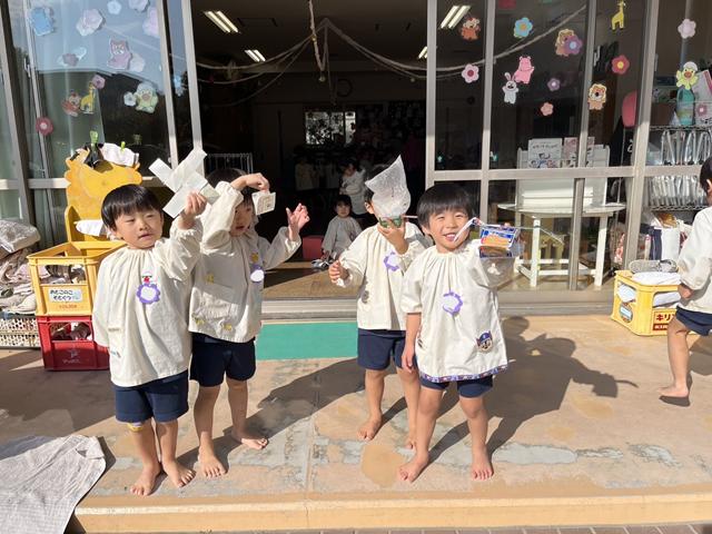 また作ったものを使って友だちと遊んだり、身に付けたりしています。