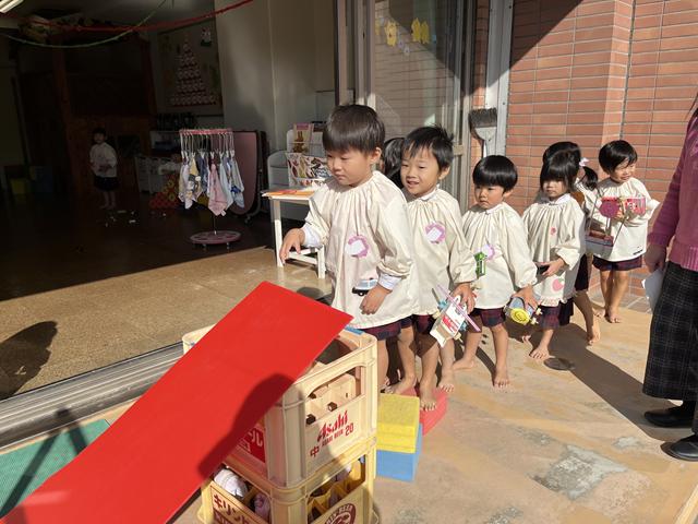 「持って帰ってママに見せたい!」「お家でも遊びたい!」と絵本袋に入れて持ち帰りますので、是非、お家でも話を聞いていただけたらと思います。