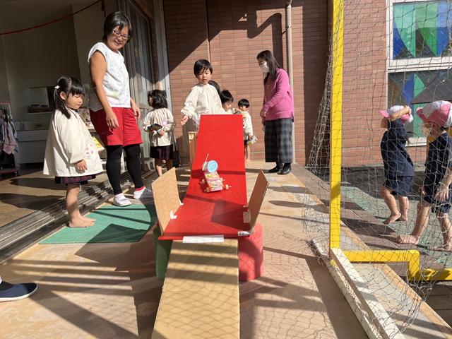 また、友だち同士で「ここにテープつけるといいよ」「持っててあげようか」と教え合いながら遊んでいます。