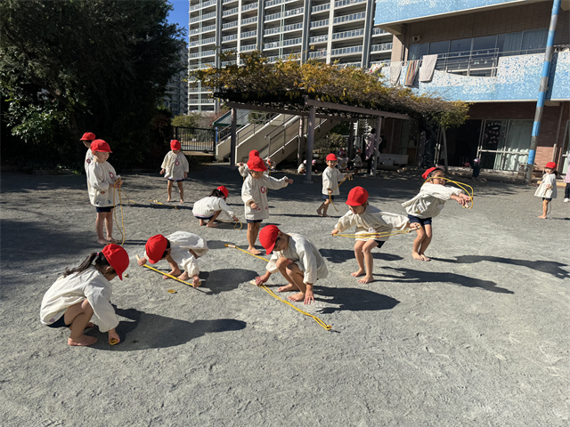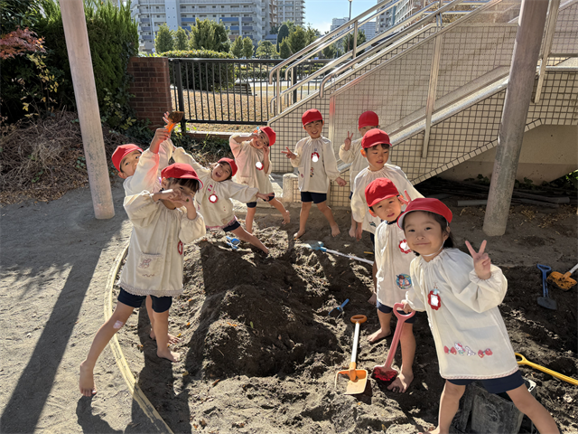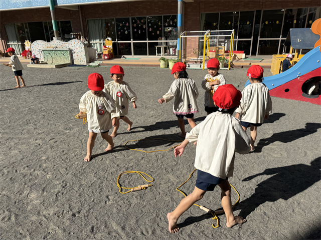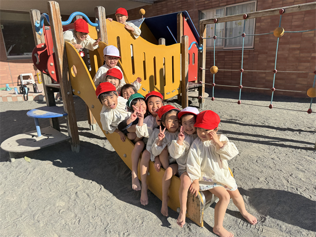 12月になりましたが、日中はポカポカとあたたかい日も多く、4歳児 梅A組の子どもたちは今週も戸外で元気に遊びました😊