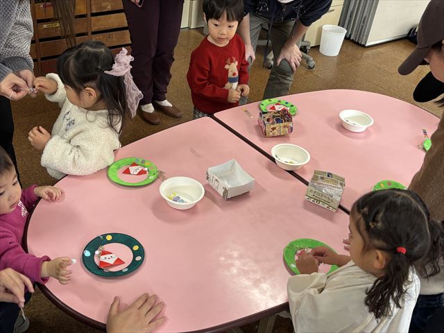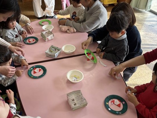 楽しみにしていた製作では、サンタさんリースにきらきらシールを付けて飾り付けしました✨