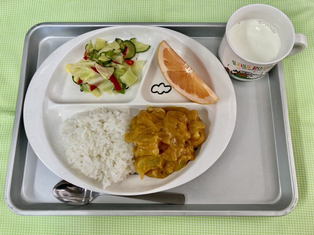ハヤシライス・ミルク・カラフルサラダ・バナナ