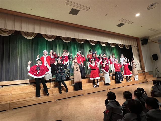 素敵な衣装や被り物をつけたお父様・お母様方の歌声に、幼稚園のお友だちも楽しみながら一緒に歌ったり、踊ったりしました。コーラス部の方々、素敵なクリスマスコンサートをありがとうございました✨
