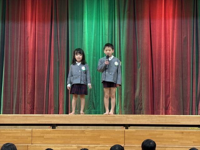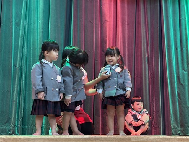 舞台に立った12月生まれのお友だち😄一人ひとりインタビューに答えました🎤上手に発表できましたね。