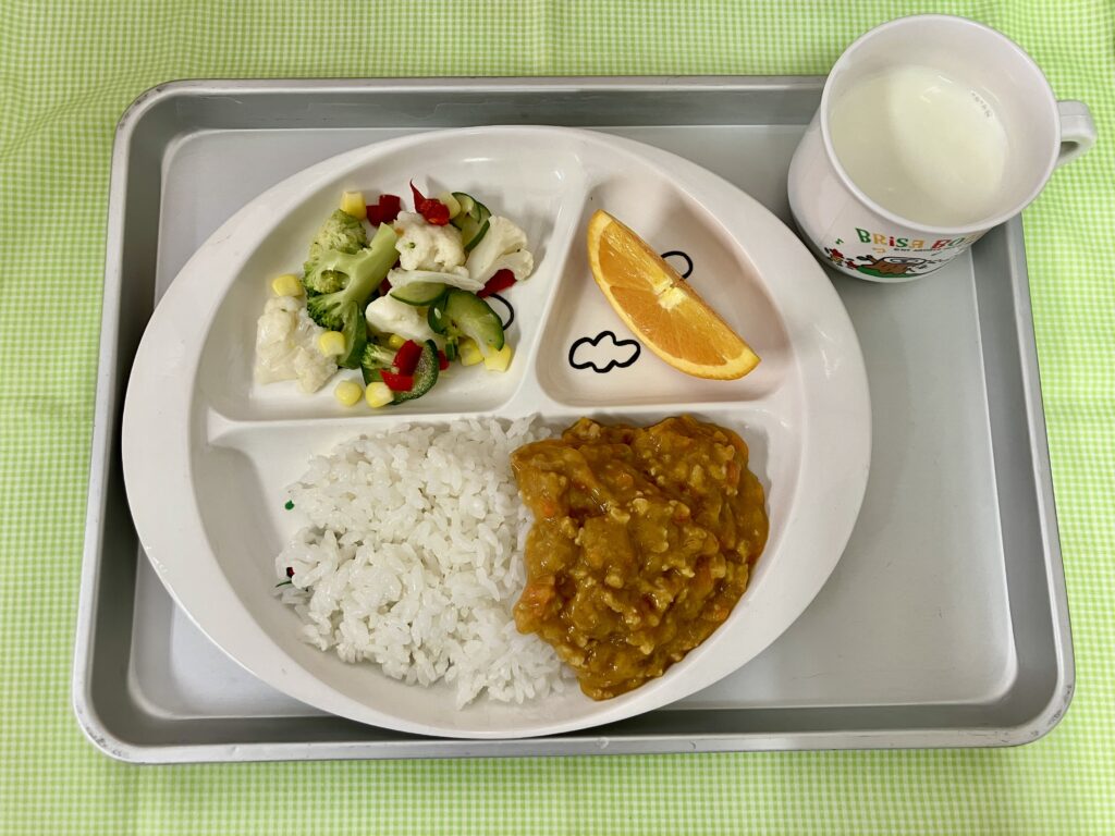 キーマカレー・ミルク・花野菜サラダ・オレンジ