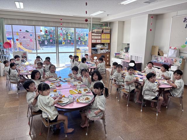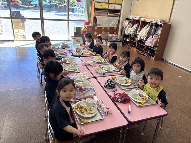 久しぶりの給食にワクワクのお友だちがいっぱいでした。