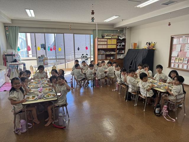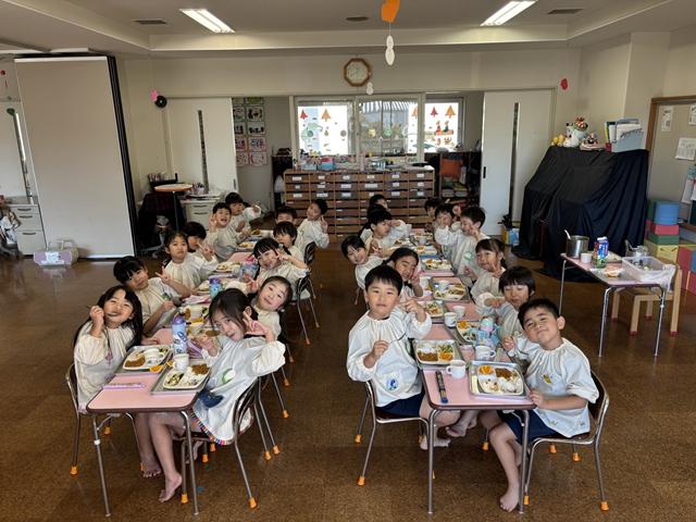 これからも食事のマナーを守って正しい姿勢、箸の持ち方で好き嫌いせず食べて『たのしみまショー』に向けてパワーをたくさん溜められるように友だちや先生と一緒に楽しく給食を頂きましょうね。