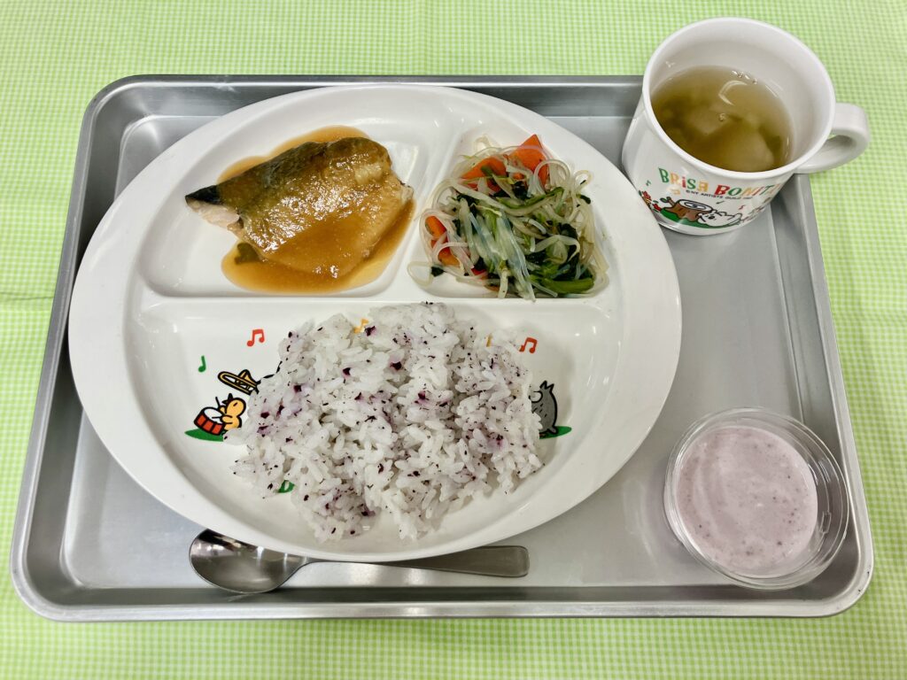 ゆかりごはん・けんちん汁・さばの味噌煮・春雨の和風サラダ・ブルーベリーヨーグルト