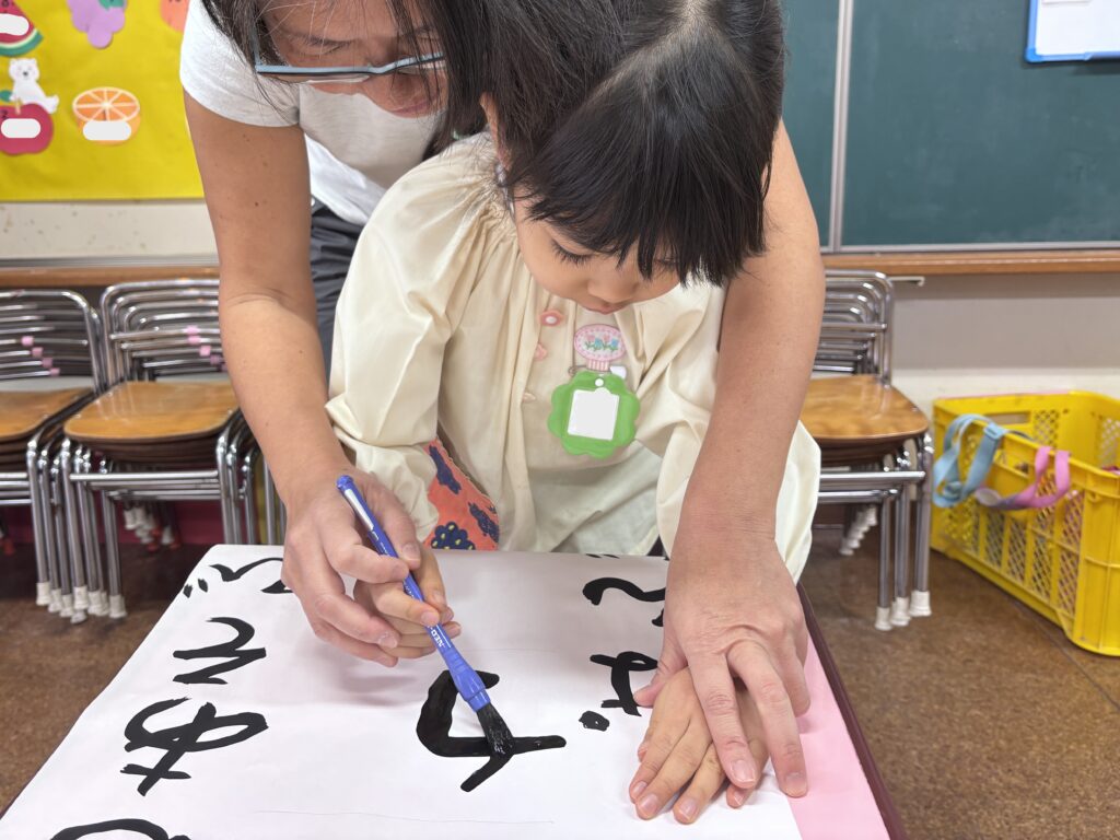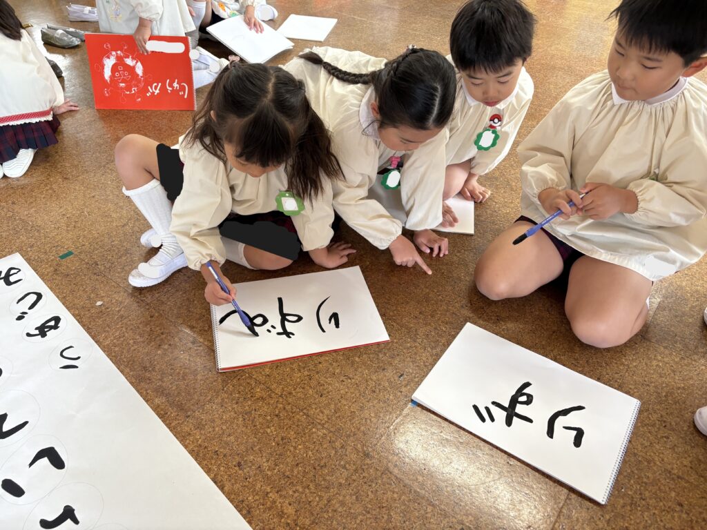 「すごい、大きい紙だね!」「【む】書けるよ!」と松組さん、自信満々に書いてくれました。