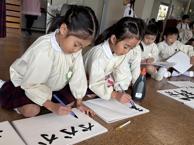 だんだんと筆の扱いにも慣れ、力の入れ方、はね・とめも意識して書けるようになった松組さんもいましたね!
