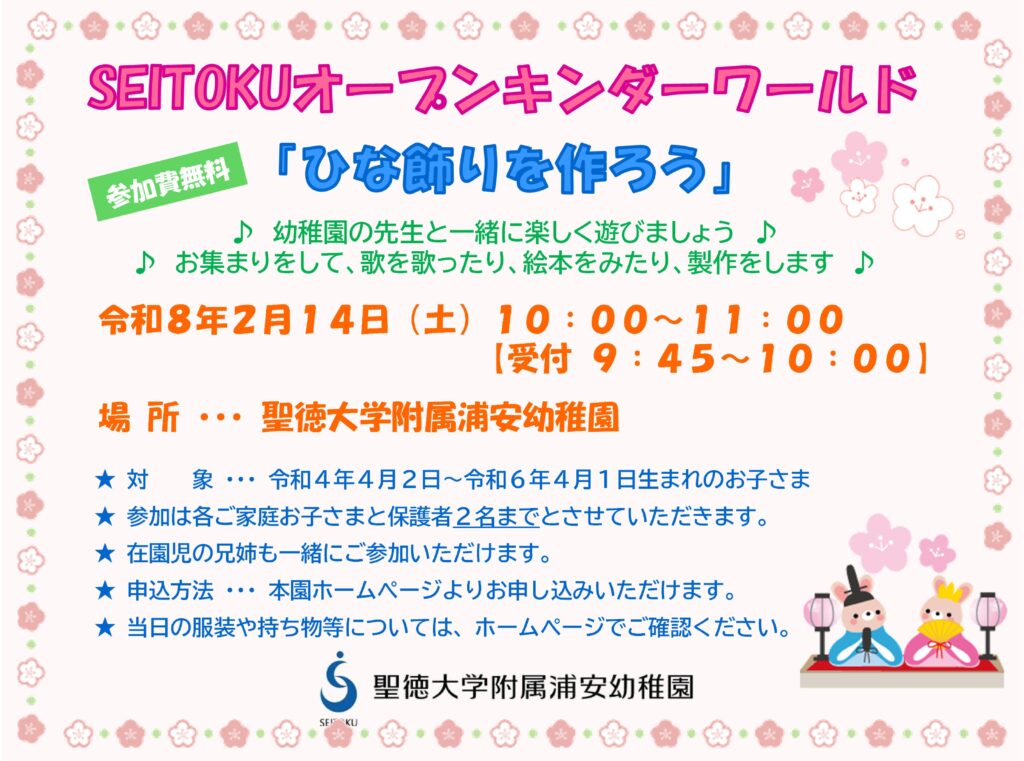 【2月14日開催】SEITOKUオープンキンダーワールドのご案内