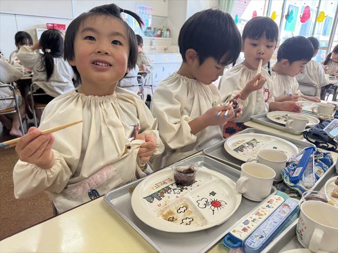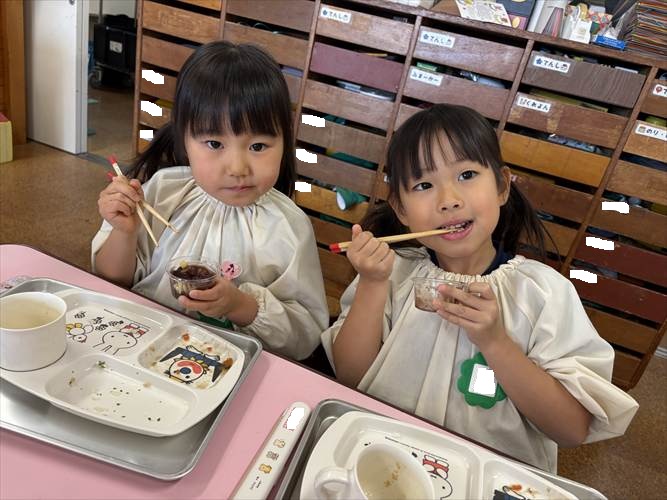 おしるこが少し苦手なお友だちもいたと思いますが、本日は食べ物のありがたさを感じながら「おしるこ」や給食をいただきました。