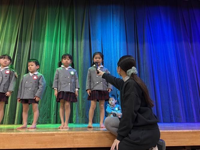 少し恥ずかしくなってしまうお友だちもいましたが、マイクで答えることが出来ました。