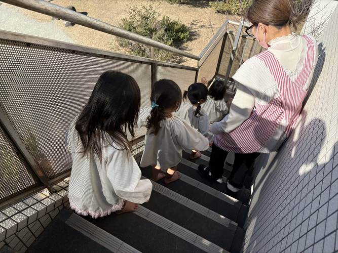 保育室に戻るまでの階段も気を付けて降ります。