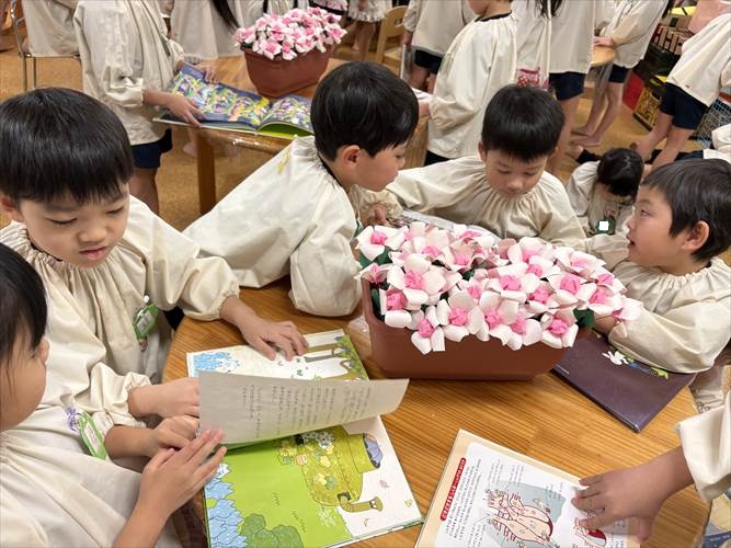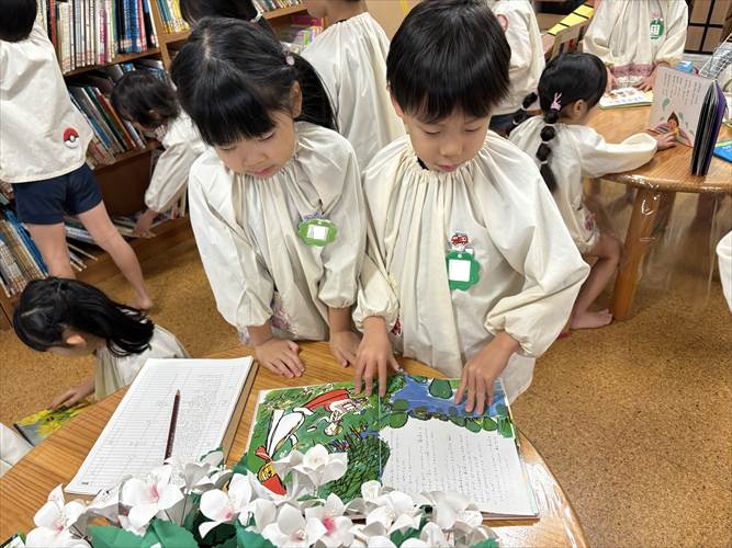 「図書館みたい!」としぜんの本やたくさんの絵本に大喜びの子どもたちでした。
