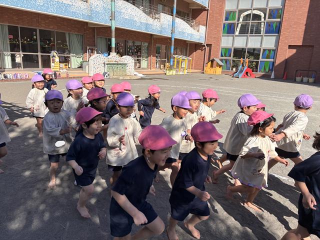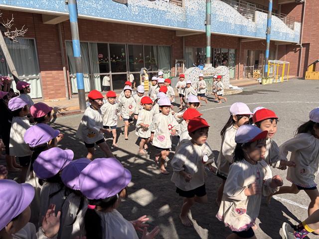 梅組さんが、お外でマラソンをしていた時もピッ、ピッ(笛の音)「ファイト💪」とみんなで応援🚩