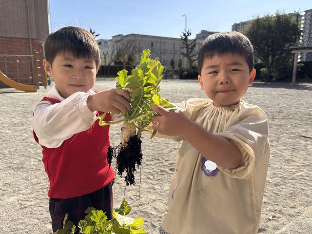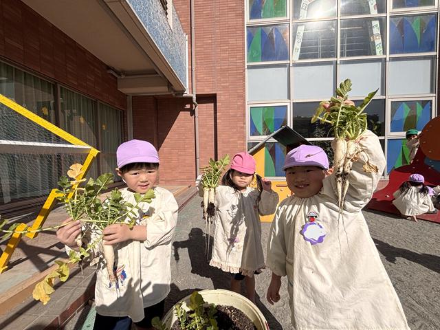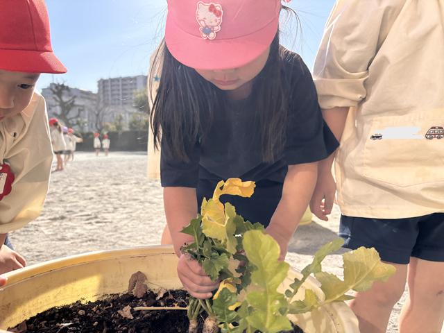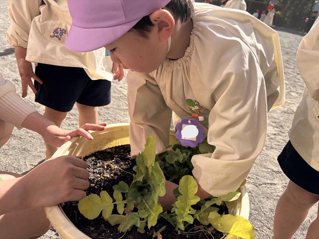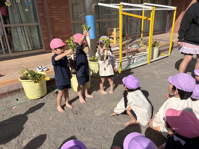 「パンダ組さん、梅組さん、松組さんにもあげたい❤」と自分たちで育てたダイコンを今度は、他の学年にも分けて食べさせてあげたいという気持ちも出てきて・・・みんな、「美味しい!」と言ってくれるかしら?