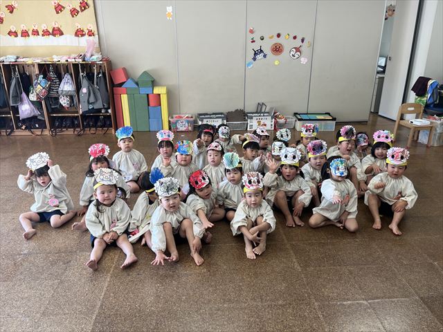 その後は、お部屋に帰って先生や友だちと一緒に「鬼は~そと!福は~うち!」