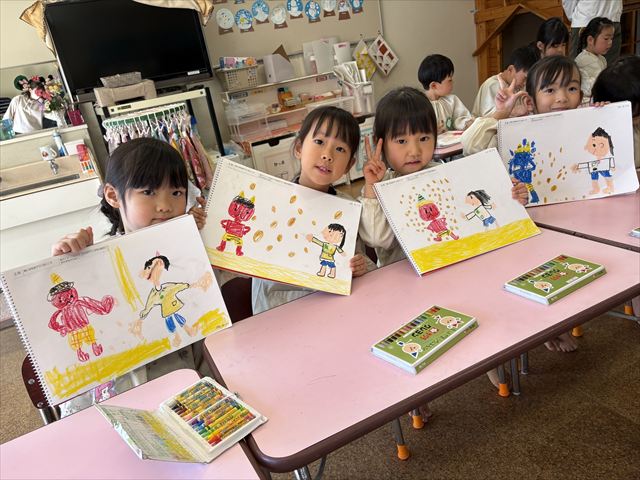 松組のお友だちは【鬼に豆を投げているところ】の印象画を描きました。