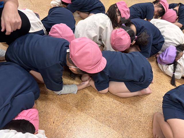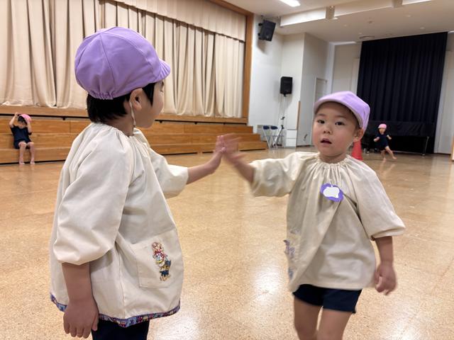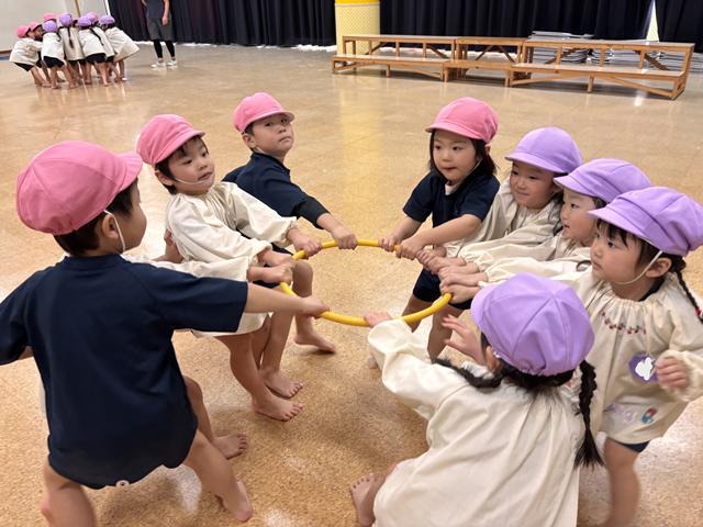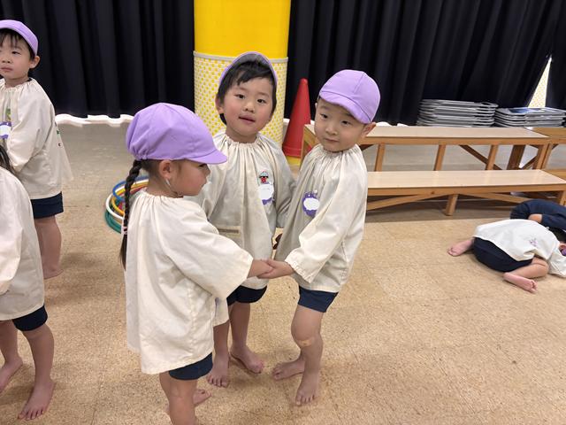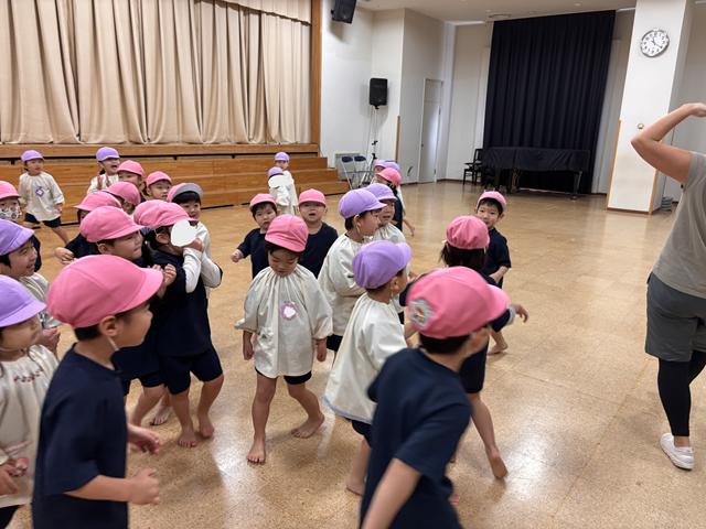 たのしみまショーで桜組みんなで歌ったり、踊ったり、台詞を言ったりする楽しさを覚え、その後もみんなでゲーム遊びをして遊んでいます。