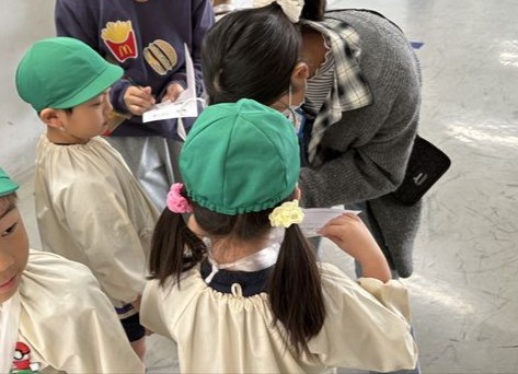 実際に教室の中に入ったり教室の説明も聞くことができて、興味津々の松組のお友だちです。探検した教室にははなまる💮のしるしをつけてもらいました。