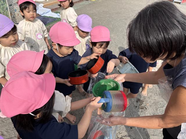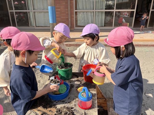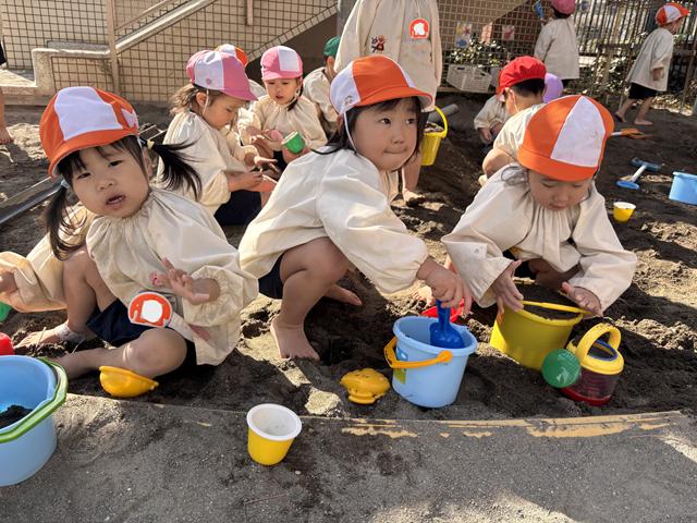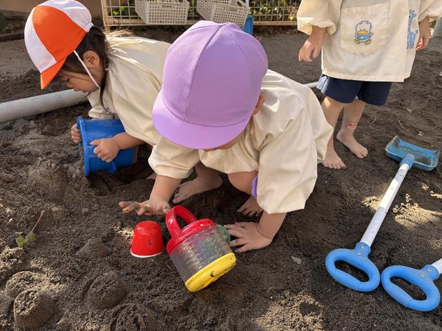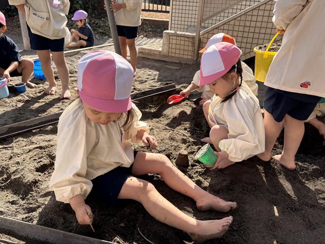 浦安幼稚園のパンダ組・桜組の子どもたちは砂遊びが大好きです。