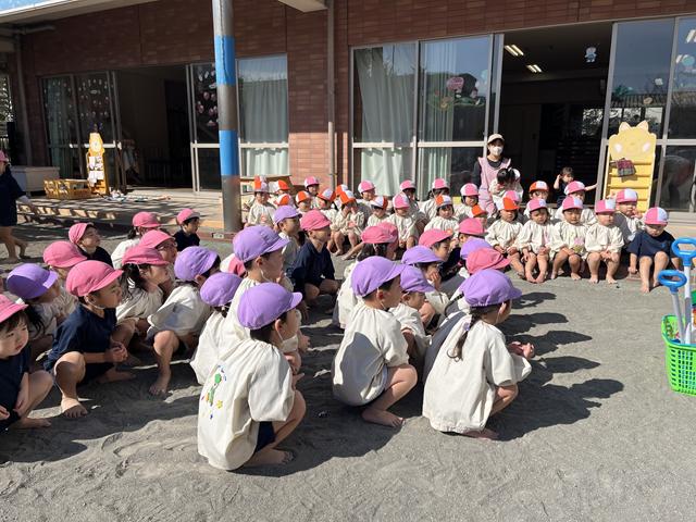 再度、パンダ組・桜組の子どもたちで砂場の遊具の使い方、片付け方の確認をしました。