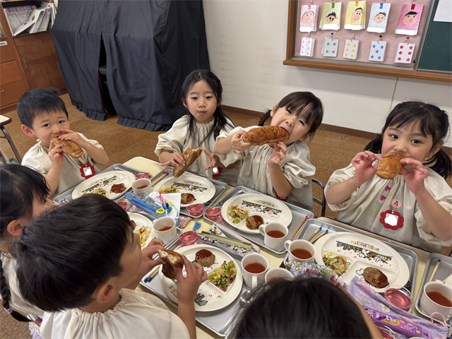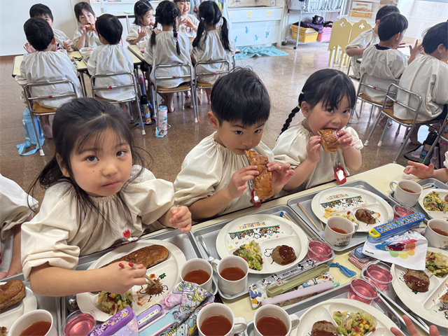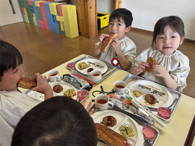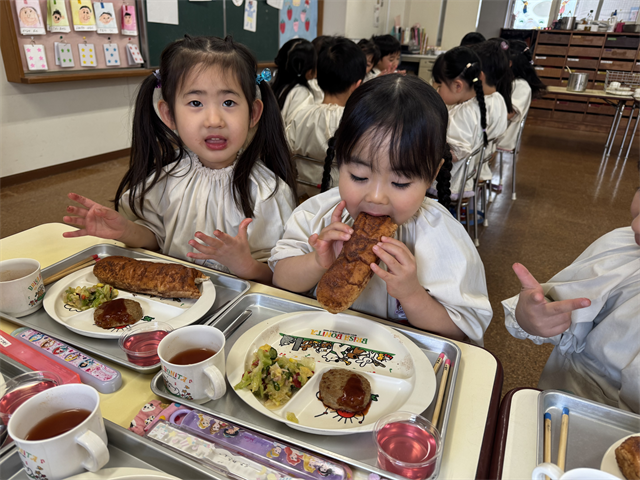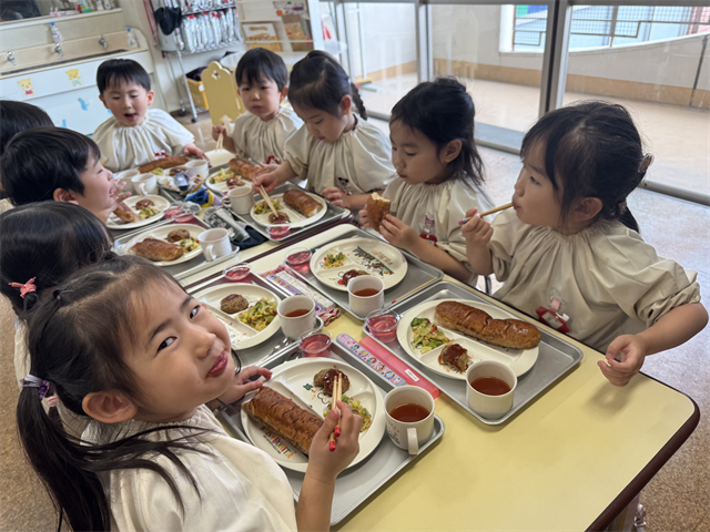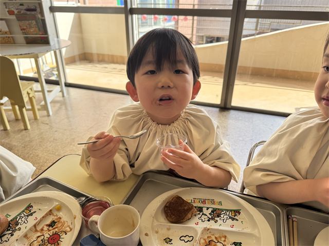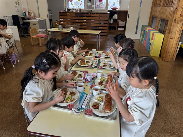 4歳児 梅A組のお友だちは、給食の時間が大好きです!
