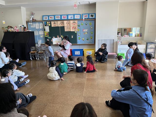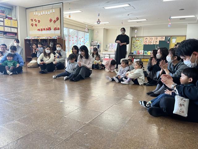 最後は、「チョコレート」の手遊びをして絵本を見てさようならのご挨拶をしておしまいになりました。