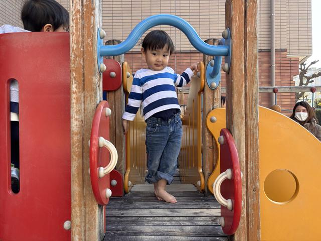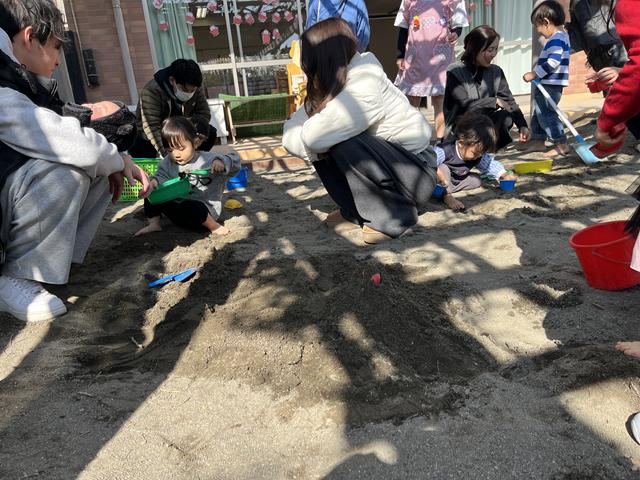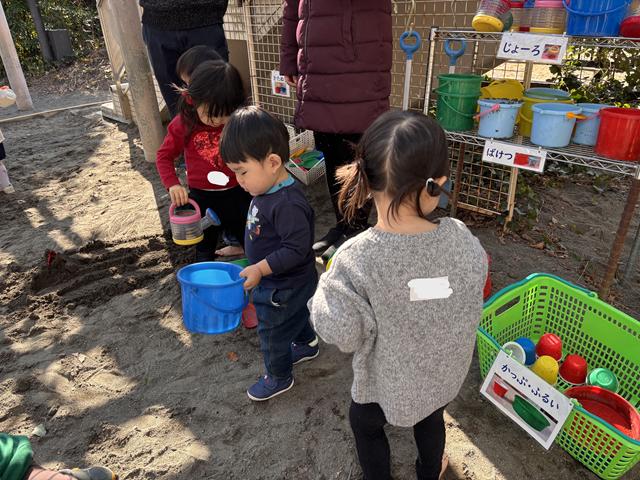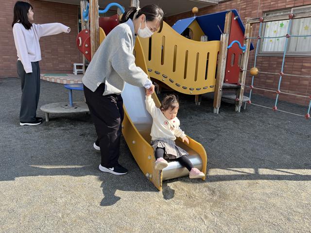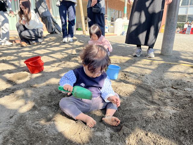 そして、本日はとても良いお天気でしたので戸外に出て砂遊びや滑り台などをして身体をたくさん動かして遊びましたよ。