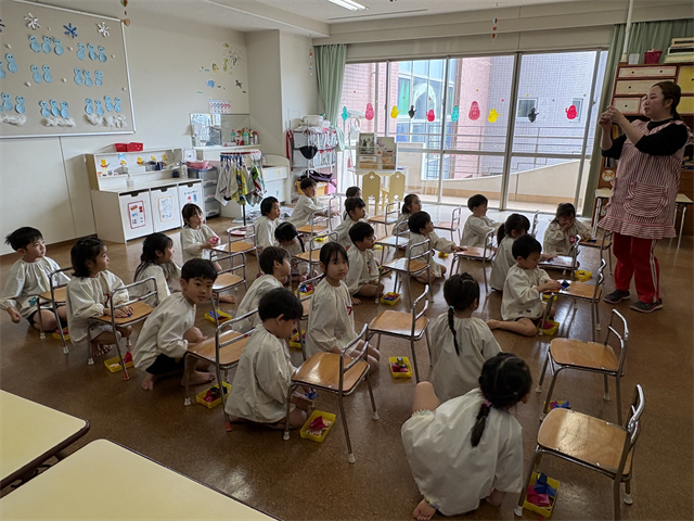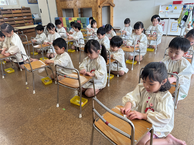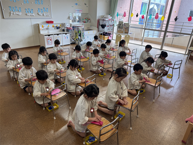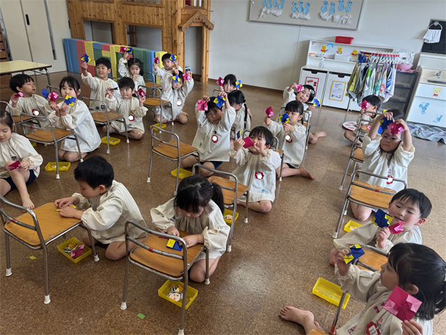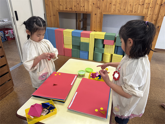 今までの折り紙遊びの経験から、先生の話をよく聞き落ち着いて折り進める姿が多く見られました😊