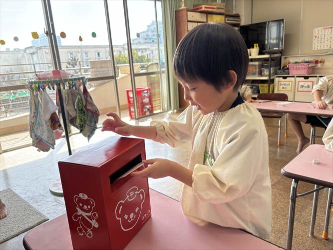 まだまだ園内でもお友だちや先生に向けてお手紙を書いて郵便ごっこを楽しんでいますよ。