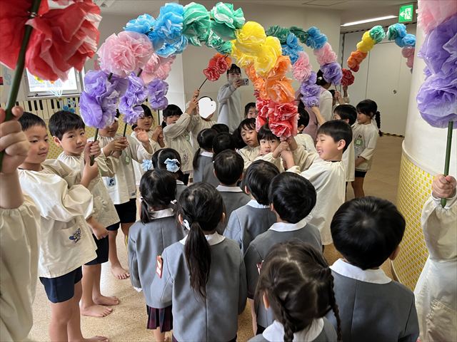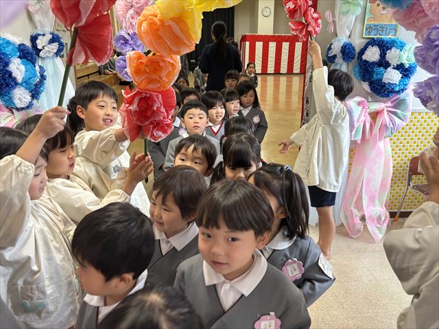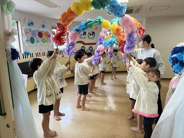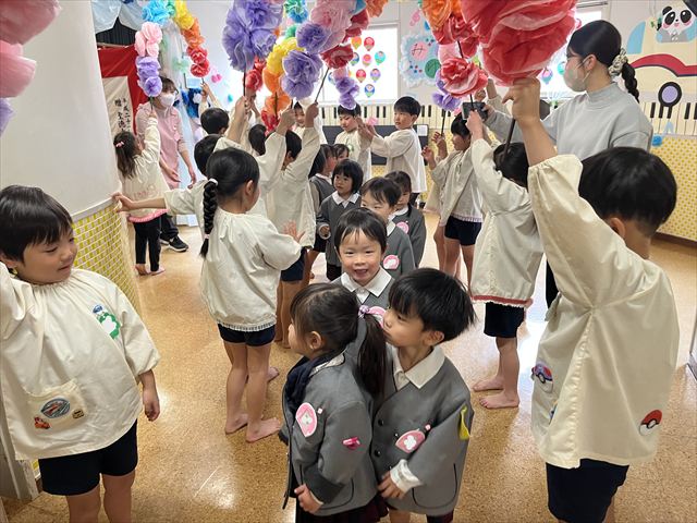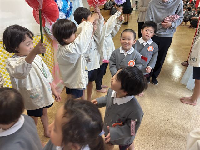 退場する時は、先日卒園式を終え預かり保育にきていた松組のお友だちが花道を作ってくれました。