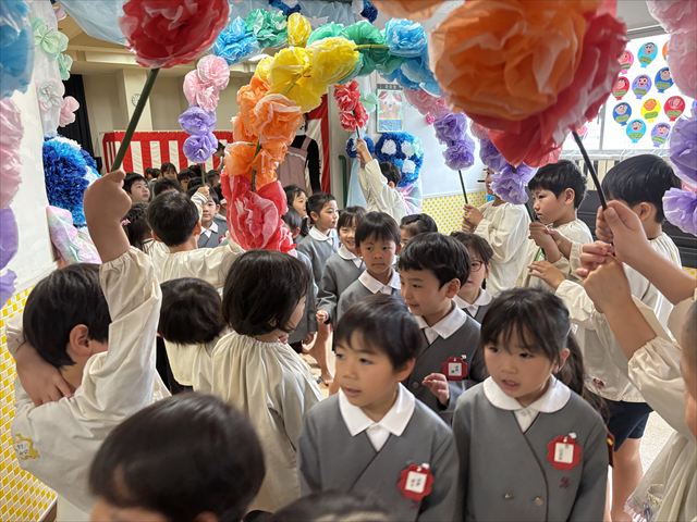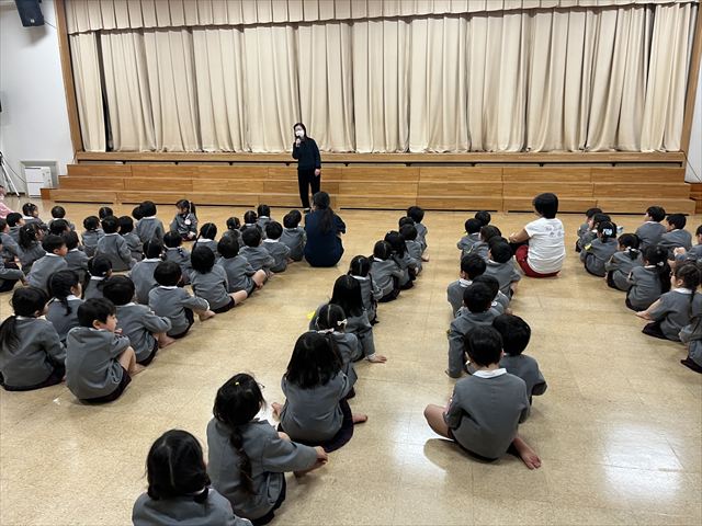 話や歌を聞く時の姿勢もとても良く、きれいな声で楽しく歌っていました。この一年で、他学年の姿を見てパンダ組のお友だちも話を聞く時のマナーや約束も身につきました。