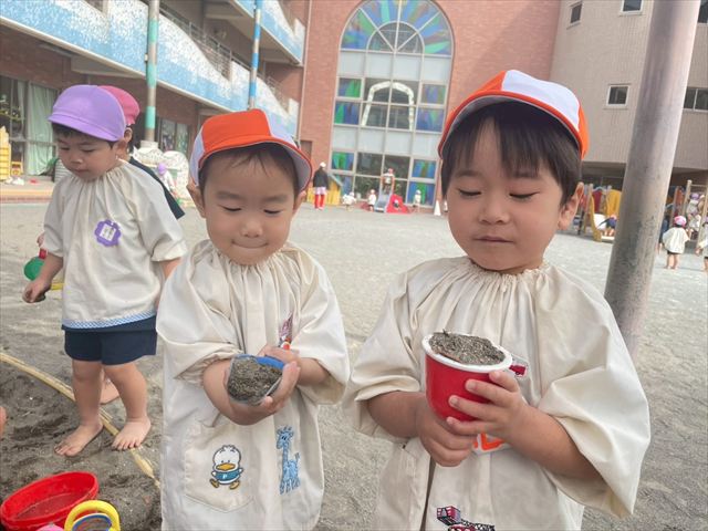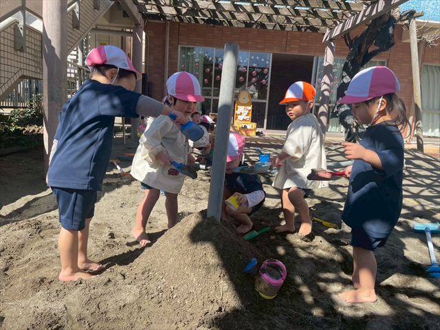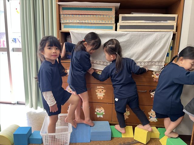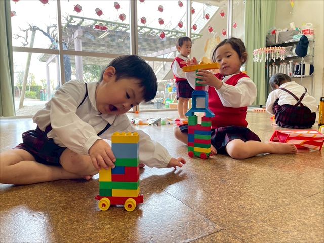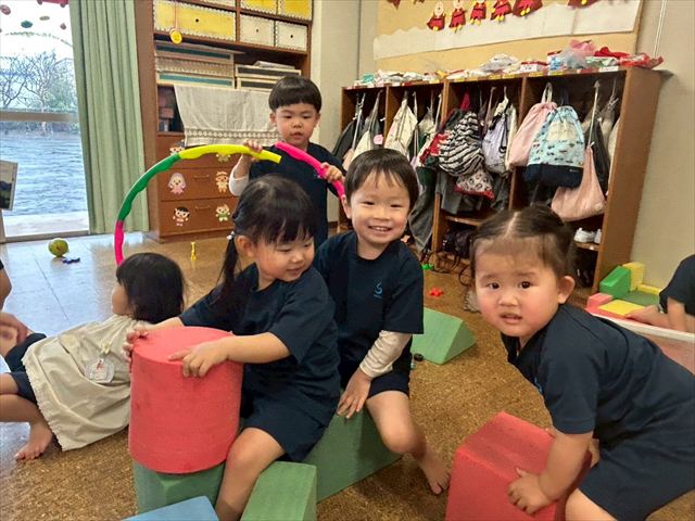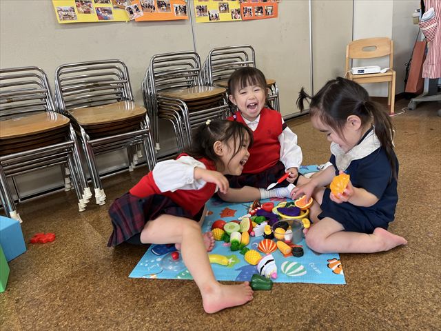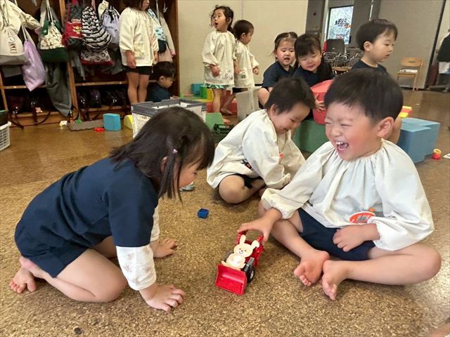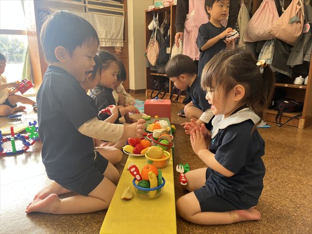 この一年間でパンダ組のお友だちはできるようになったことがたくさんありますね。着替えや支度が一人でできるようになったり、箸を持って給食をいただいたり、自分の思いを主張するだけではなくお友だちのことを考え我慢したり、一緒に遊びを進める楽しさに気づいたり…たくさんのことができるようになりました。そして、お友だちと遊んでいる時に見せる表情もとても自然でいいお顔になりました。
