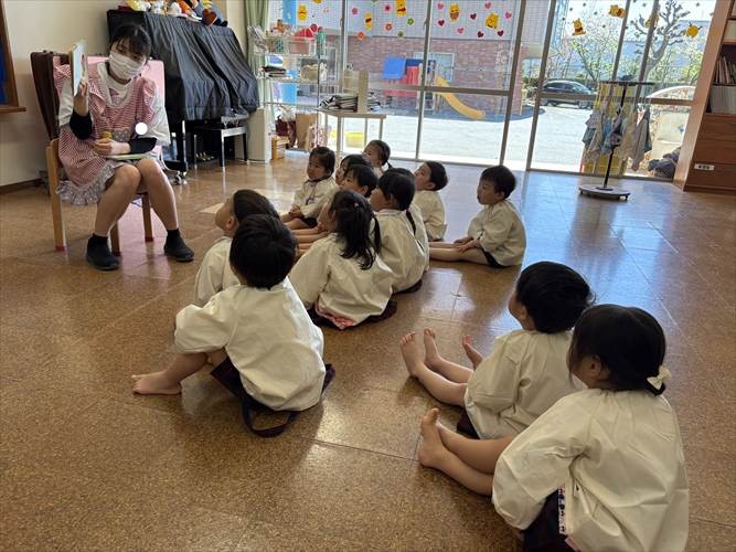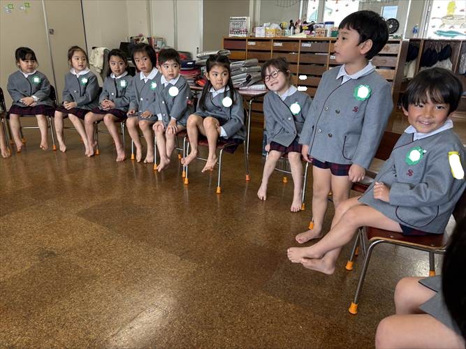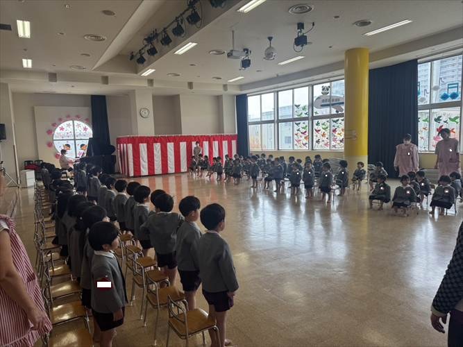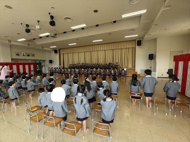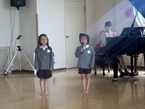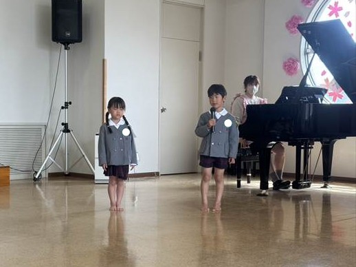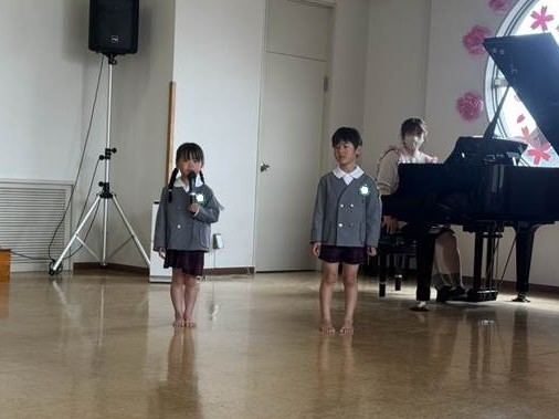 「おはようの歌」「幼稚園園歌」をみんな揃って歌い、