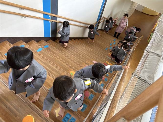 さくら組、パンダ組も先生やお友だちと一緒に階段を上がりましたね。