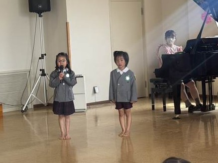 幼稚園で一番大きなお兄さん・お姉さんのまつ組のお友だちに「はじめのことば」をお願いしました。