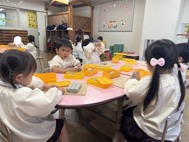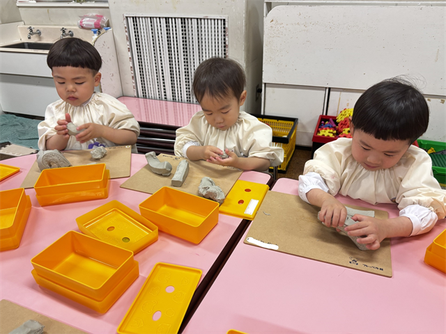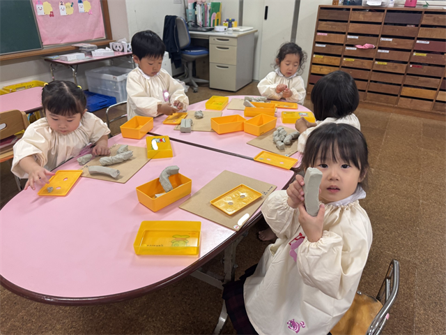 先生から粘土遊びの約束事を聞いて、遊びましたね💕