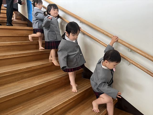 遊戯室は二階です。手すりをもって階段の上り下りを頑張りました。